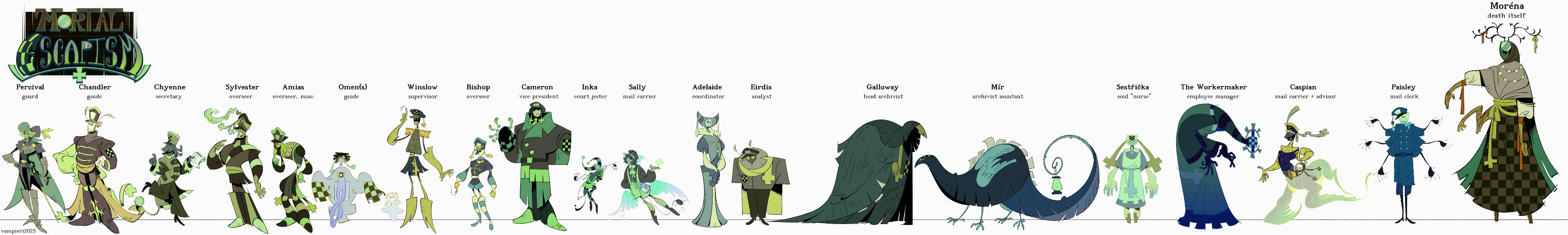 Workers on lower tiers may be restricted to classified information and vice versa.Overseers are mostly the all rounders, supervising workers in all sorts of departments and reporting back to their higher ups.Guides work with human souls specifically, assisting when needed so they may cross the border to Afterlife, they sometimes also interject with Archivists for potential documentation of a mortal’s information.Mail handlers manage and deliver all incoming and outcoming letters of Limbo.